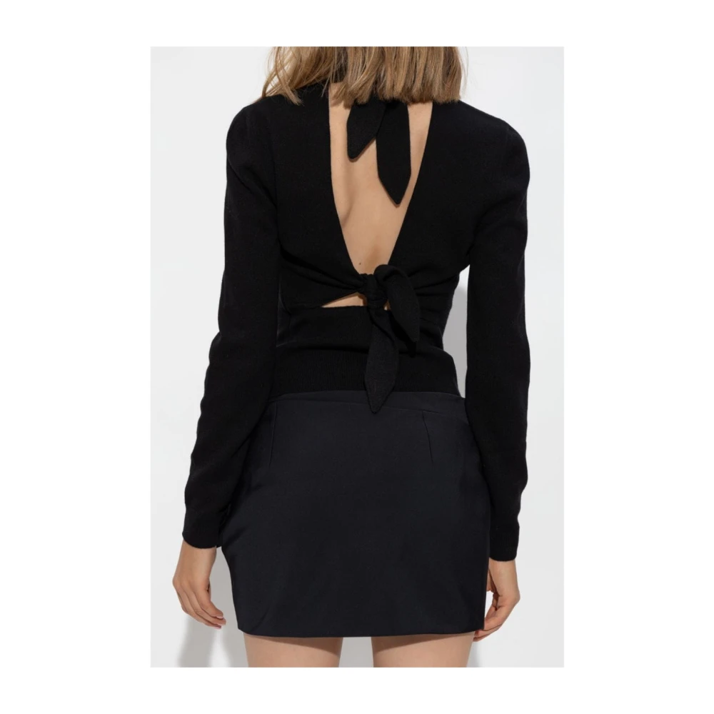 Ontdek de elegantie van de Givenchy Open Back Truien Sweater, een verfijnd kledingstuk gemaakt voor wie luxe en stijl waardeert. Met zijn unieke open rug design is deze sweater perfect om een statement te maken. Belangrijkste kenmerken: Zwart | Viscose | Lamswol | Cashmere | Open rug | Details met strikjes | Turtleneck | Afmetingen en pasvorm: Regular fit | Samenstelling en onderhoud: 30% Viscose | 45% Lamswol | 25% Cashmere | Uitsluitend chemisch reinigen