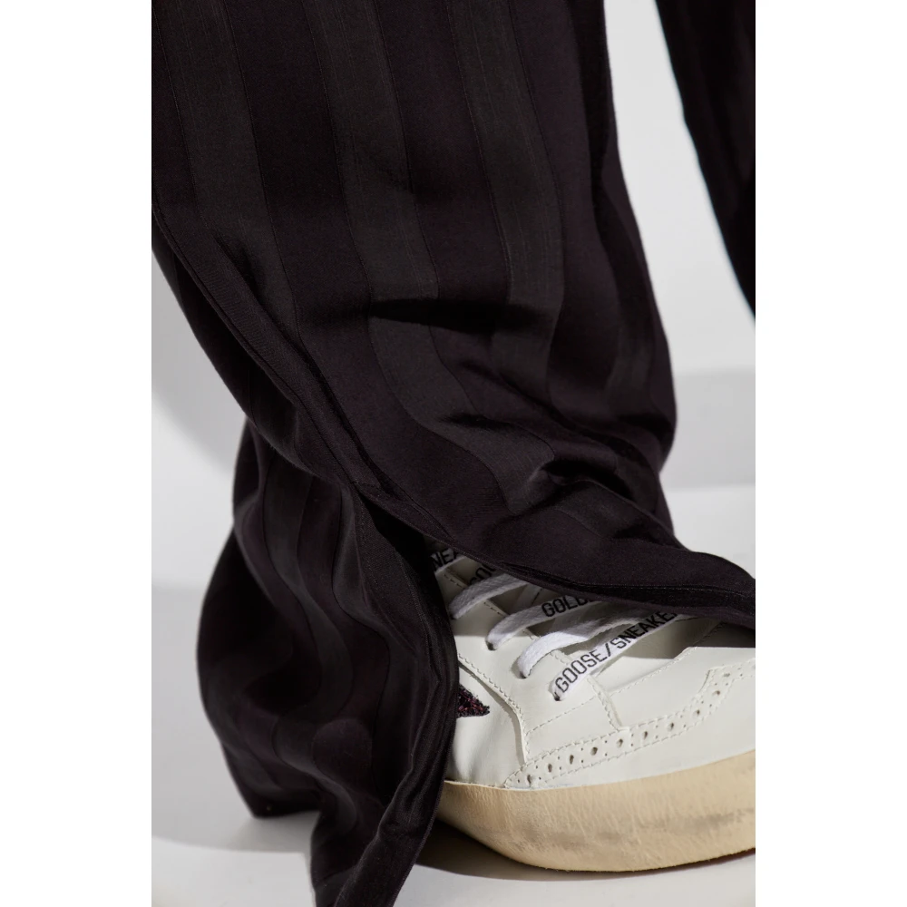 Ontdek de unieke stijl en het comfort van de gestreepte broek van het gerenommeerde Italiaanse merk Golden Goose. Dit exclusieve aanbod belichaamt elegantie en vrijheid, en combineert perfect klassieke en moderne elementen. Belangrijkste kenmerken: Zwart | Viscose | Katoen | Elastische tailleband | Twee steekzakken | Subtiel verticaal gestreept patroon | Losse, wijde snit | Vloerlengte ontwerp | Afmetingen en pasvorm: Losse pasvorm | Samenstelling en onderhoud: Viscose | Katoen | Machinewas koud, droogtrommel laag