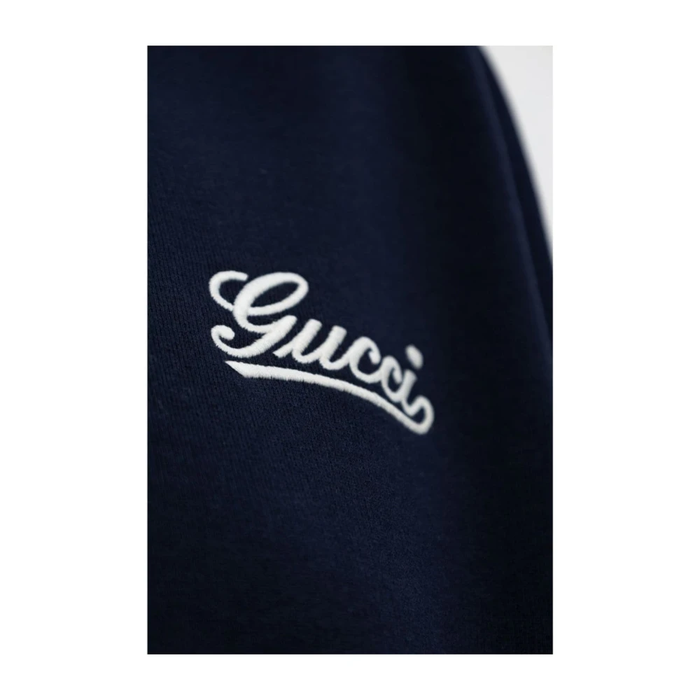 Upgrade je casual look met deze navyblauwe Gucci hoodie voor vrouwen. Gemaakt van zacht katoen, deze klassieke hoodie heeft lange mouwen, een geborduurd logo op de borst, geribbelde manchetten en zoom, een voorzak en een intern logo embleem. Dit item is afkomstig van een merk dat door Good On You is beoordeeld met drie van de vijf sterren. Valt normaal qua maat. Model is 1, 75m lang en draagt maat S.