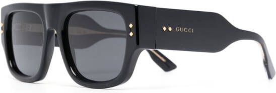 zwart/goudkleurig acetaat lens sticker grijze glazen vierkant montuur rechte pootjes pootjes met gegraveerd logo goudkleurige studs Deze bril wordt verkocht met een beschermhoes.