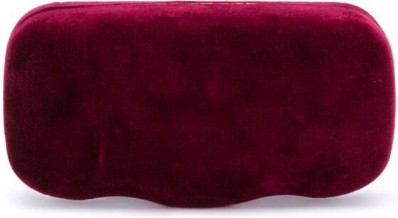 Zonnebril met vierkant montuur van Gucci Eyewear uitgevoerd in acetaat voorzien van donker getinte glazen, gestrekte armen met hoekig uiteinde, goudkleurige fitting en logo aan de buitenkant van de armen.