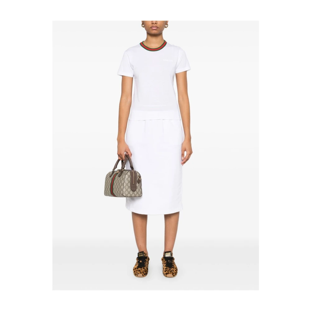 Upgrade je casual look met deze Gucci witte t-shirt met ronde hals, korte mouwen, rechte zoom en geborduurd logo op de borst. Dit item valt normaal qua maat. Model is 1, 75m / 5ft 8in en draagt maat S.