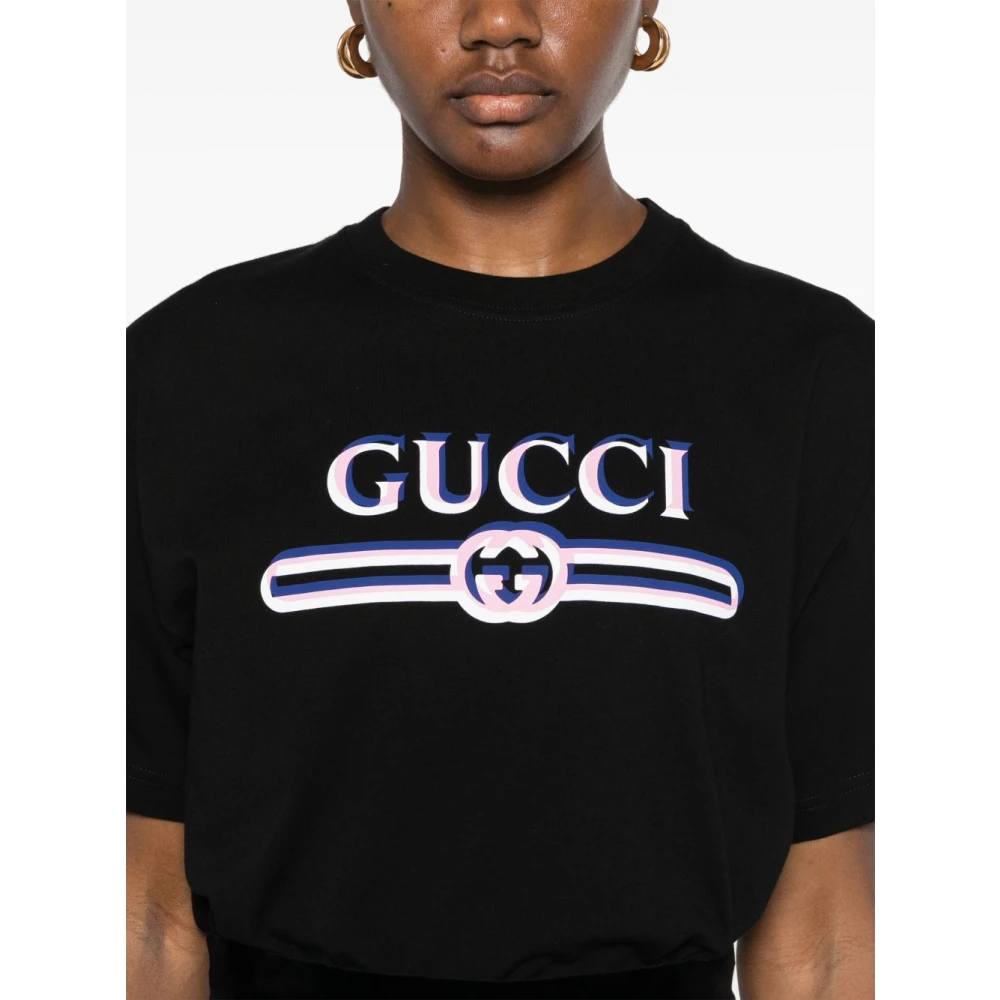 Upgrade je casual look met deze Gucci T-shirt voor vrouwen. Ontworpen om precies op maat te passen, is dit stuk een must-have in elke modieuze garderobe. Model is 1, 75m / 5ft 8in en draagt maat S.