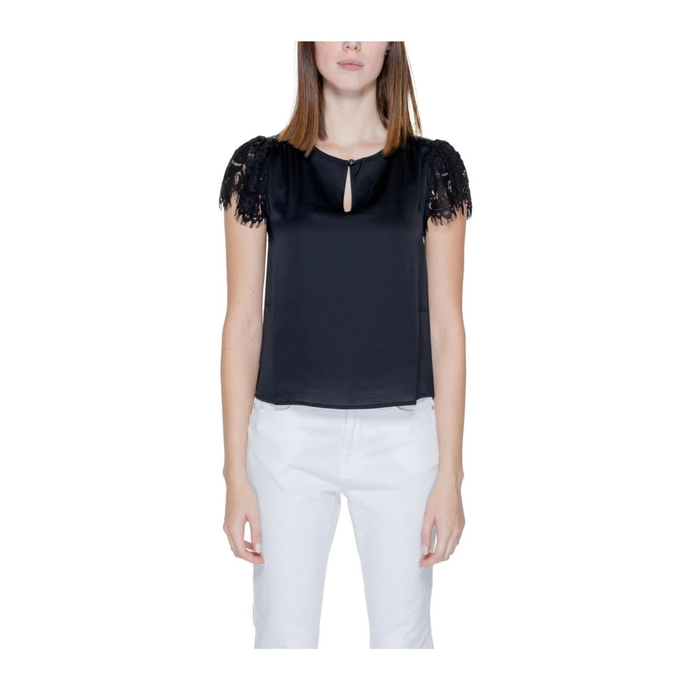 Upgrade je garderobe met deze zwarte polyester blouse van Guess. Deze damesblouse met korte mouwen in maat It 42 | XS is een must-have uit de nieuwste collectie