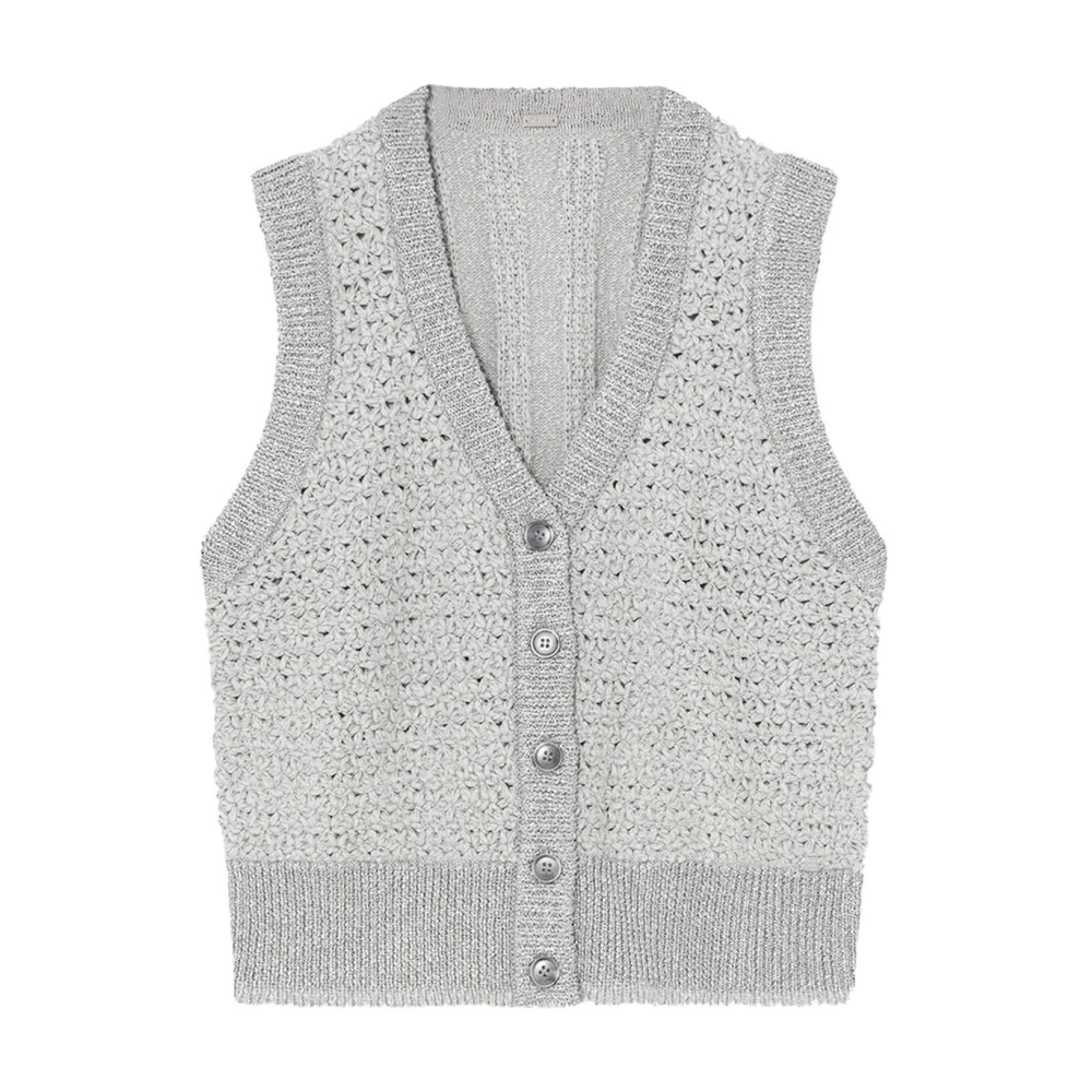 Ontdek het elegante gebreide vest met kant in Blue Nights, met verfijnde geborduurde details en een comfortabele, losse pasvorm, perfect om in laagjes te dragen bij koeler weer. Belangrijkste kenmerken: Bluenights | 55% Alpaca | 45% Polyamide | V-hals | Lange mouwen | Knoopsluiting | Strakke ribgebreide manchetten | Geborduurde details op de mouwen | Afmetingen en pasvorm: Losse pasvorm | Samenstelling en onderhoud: 55% Alpaca | 45% Polyamide | Decoratie: 100% Katoen | Machinewas op 30 graden