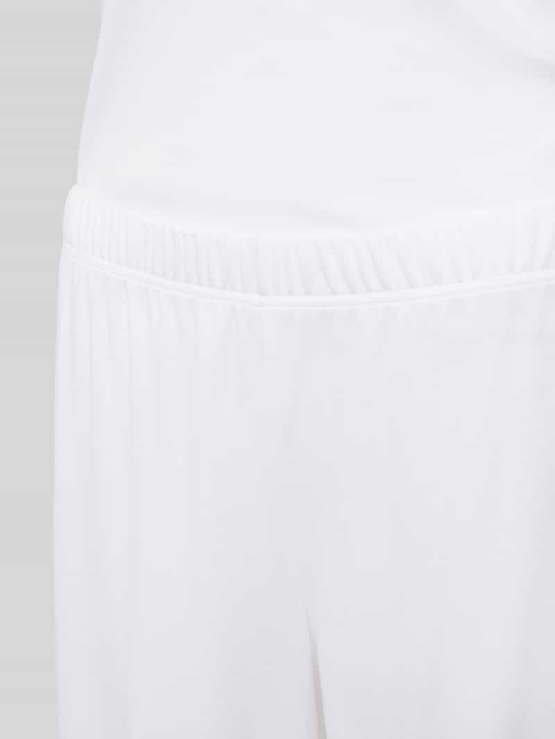 Damespyjama van Hanro. Puur katoen. Los model. Pyjamabovendeel met V-hals. Pyjamabroek met elastische band
