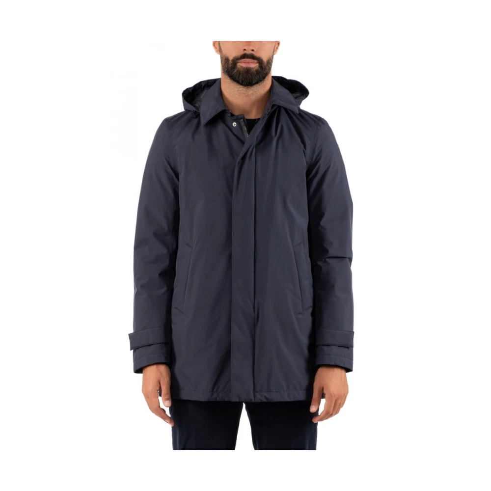 Blijf warm in stijl met deze blauwe donsjas van Herno. Met lange mouwen, een klassieke capuchon, rechte zoom, klassieke kraag en ritssluiting aan de voorkant. Gemaakt van 100%Pl stof