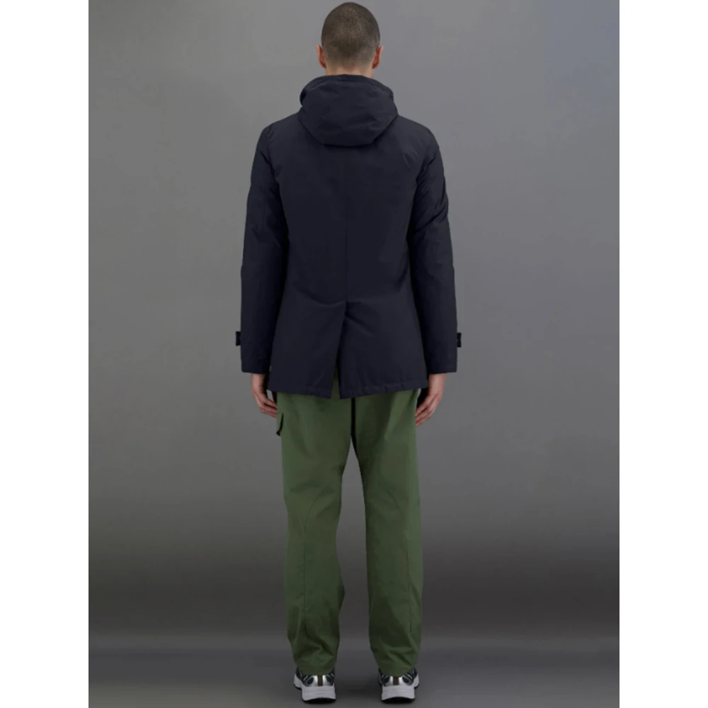 De Herno Laminar Gore-Tex 2Layer Coat biedt een strak design met superieure bescherming tegen de elementen, waardoor het een ideale keuze is voor wie functionaliteit en stijl zoekt. Belangrijkste kenmerken: Blauw | 100% Polyester | Waterafstotend | Winddicht | Ademend | Afneembare capuchon met verstelbaar trekkoord | Bedekte ritssluiting aan de voorkant en drukknoopsluiting | Warmte-getapete naden | Overhemdkraag | Lange mouwen | Zijdelingse paspelzakken | Centrale rugsplit | Interieur quilting | Donzen en veren vulling | 2-laags constructie met Gore-Tex membraan |
