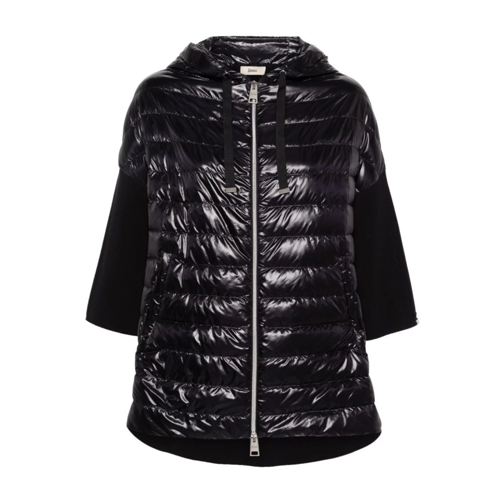 Blijf warm en stijlvol in deze zwarte nylon A-vormige jas van Herno. Met lange mouwen met rits, een hoge nek en gewatteerd nylon detail bij v. Kies je normale maat voor de perfecte pasvorm. Gemaakt van 100% polyamide en 90% dons 10% veren vulling. Perfect voor elke gelegenheid! Regular fit, raad aan om je normale maat te nemen.