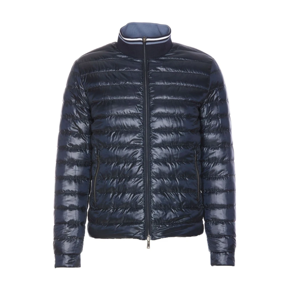 Blijf warm en stijlvol met deze Herno omkeerbare gewatteerde jas in marineblauw. Met dubbele schuifsluiting, ganzendonsvulling en gewatteerde inzetstukken, is deze jas met regular fit gemaakt van medium gewicht stof.