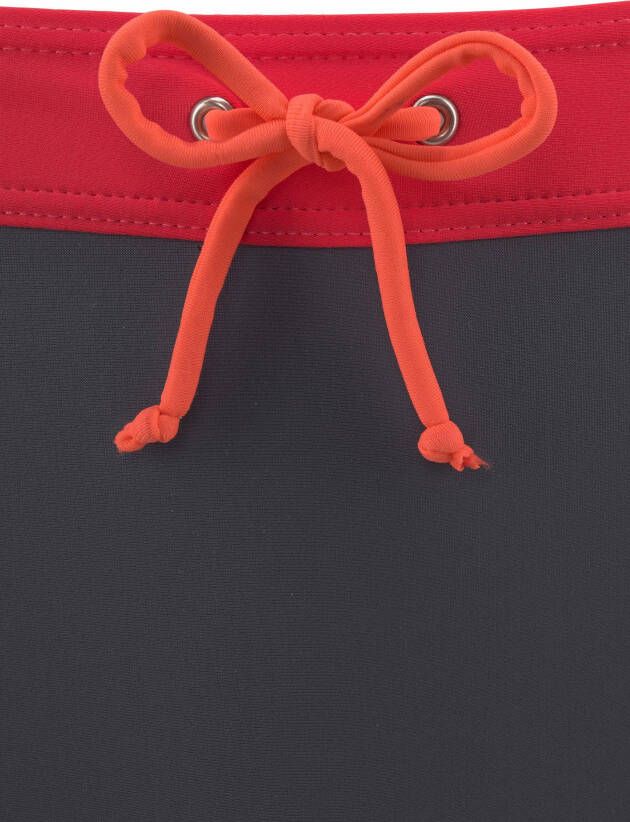 Sportieve trend-look voor een topfiguur op het strand. Topje met contrastpaspels, kleine logoprint en sportieve racerback. Hotpants met contrastband koordje. Topje voor gevoerd. Van 80% polyamide, 20%
