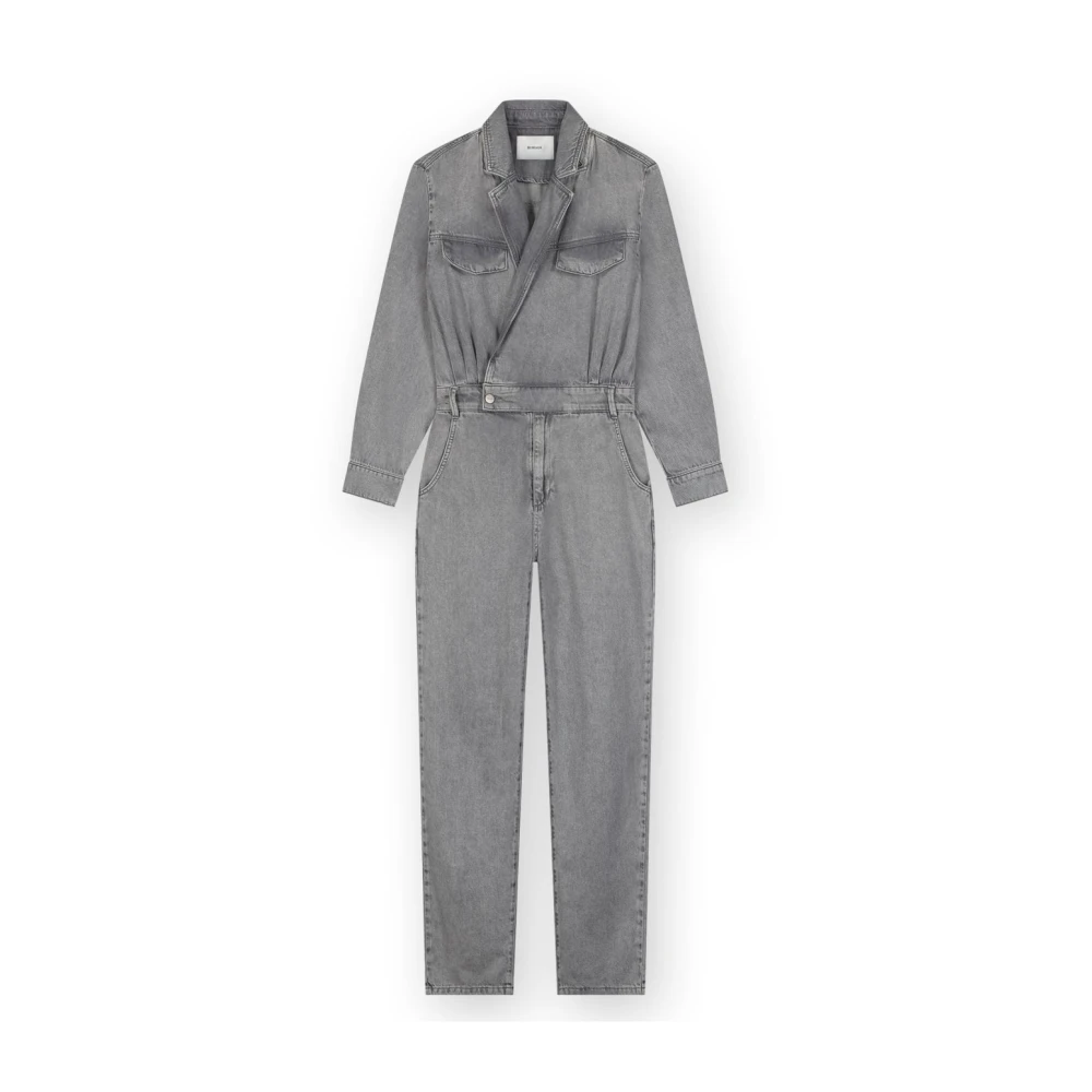 Deze dames jumpsuit van het merk Homage to Denim is gemaakt van denim. Dit model heeft een overslagkraag en lange mouwen. De jumpsuit heeft een knoopsluiting