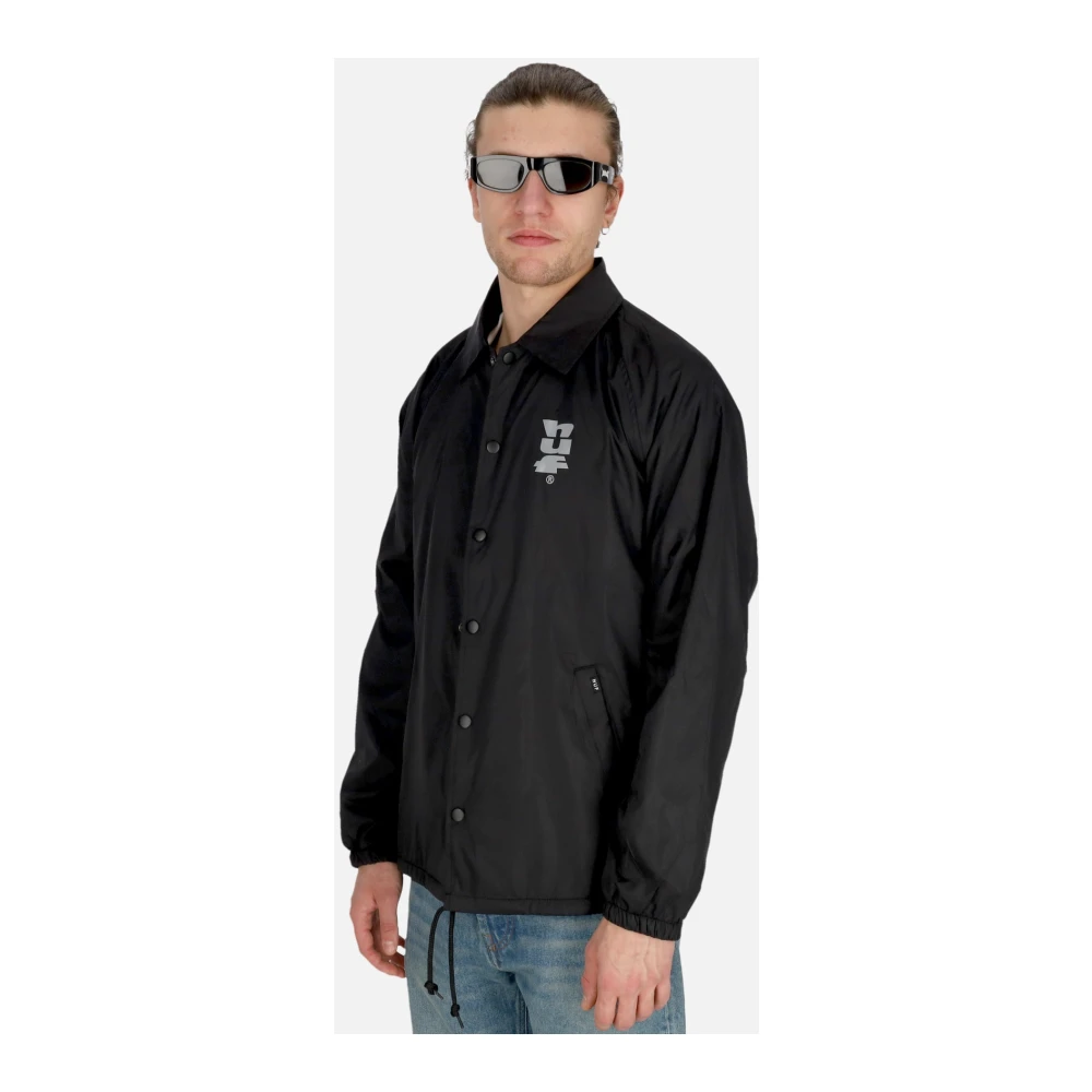 Blijf stijlvol en comfortabel met deze HUF Coach Jacket gemaakt van nylon met DWR-coating. Voorzien van een poussoir-sluiting, zijzakken, zachte pasvorm, elastische manchetten en verstelbare zoom met trekkoord. Het HUF-logo is gedrukt op de linkerzijde, achterkant en geborduurd op het label genaaid op de linkerzak. Stof: 100% nylon. Met de hand of machinewasbaar (lees het label).