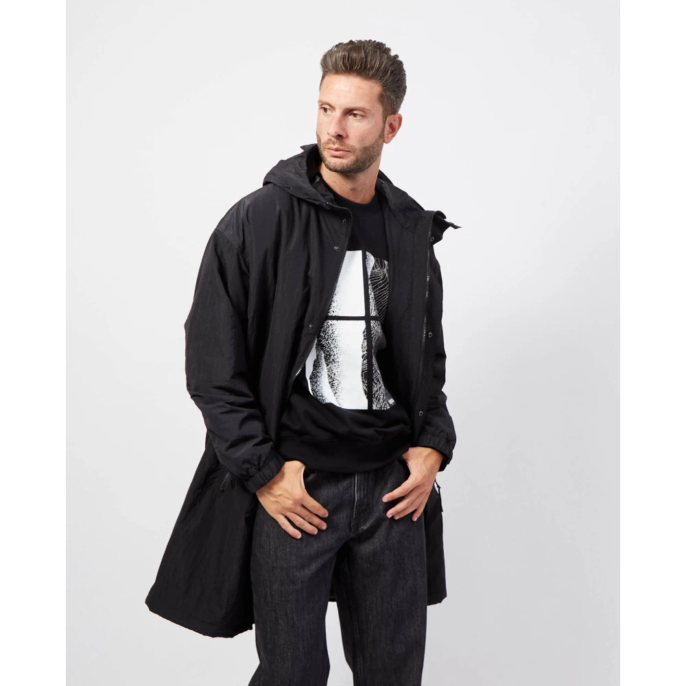 Blijf stijlvol en beschermd tegen de elementen met deze waterafstotende parka met capuchon. De ontspannen pasvorm en functionele ontwerp maken hem perfect voor dagelijks gebruik. Belangrijkste kenmerken: Zwart | Ripstop stof | Waterbestendigheid | Zijzakken | Verborgen ritssluiting en knoopsluiting | Capuchon | Logo op de arm | Afmetingen en pasvorm: Relaxed fit | Samenstelling en onderhoud: Koud wassen in de machine, drogen op lage temperatuur in de droger