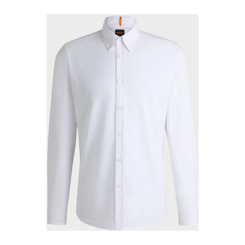 Upgrade je formele look met deze Hugo Boss Oxford model herenoverhemd in natuurlijk wit. Met een regular fit, button-down kraag, ronde manchetten en standaard lengte. Gemaakt van 100% katoen. Model draagt maat M en is 185 cm lang.