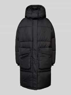 Gewatteerde damesjas van HUGO. Recht model. Capuchon met tunnelkoord. Model 'Fini'. Labelprint. Steekzakken opzij. Ruglengte bij maat S: 115 cm. Schouderbreedte bij maat S: 48 cm. Borstomvang bij maat S: 60 cm. Mouwlengte bij maat S: 59 cm
