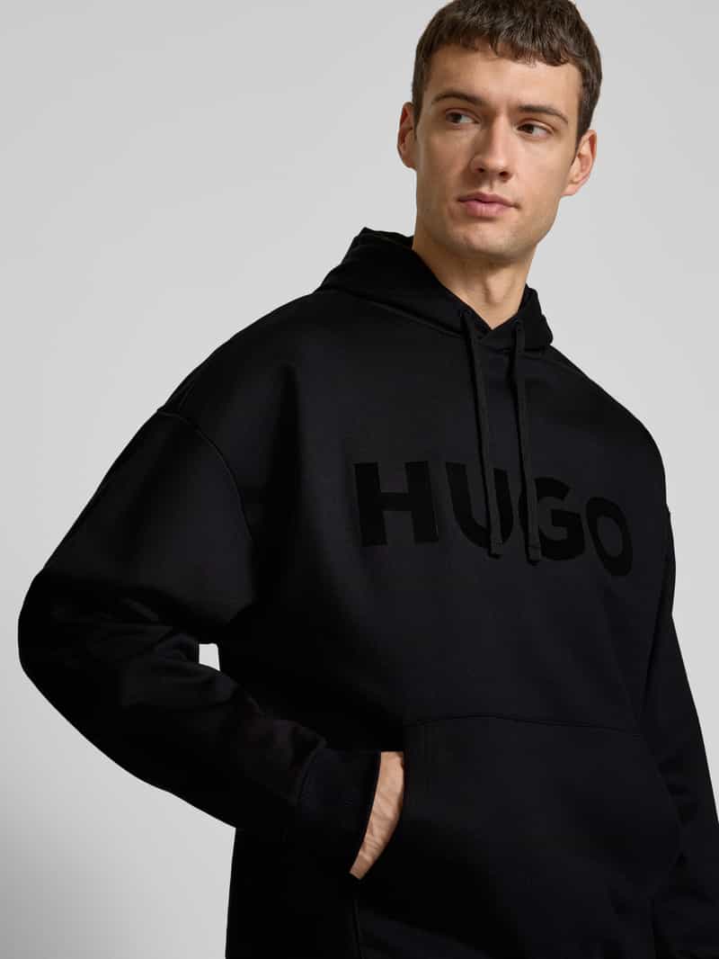 Herenhoodie van HUGO. Model 'Ditchle'. Look: effen. Pasvorm: Oversized. Applicatie: Labelpatch. Details: Kangoeroezak. Kraagmodel: Capuchon met tunnelkoord. Mouwboord: geribd. Rompzoom: geribd. Materiaalverwerking: Sweat. Materiaal: puur katoen