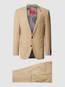 Pak voor heren van HUGO. Materiaalmix met scheerwolgehalte. Regular fit. Model 'Henry/Getlin'. Melangelook. Colbert met twee knopen. Reverskraag. Borstzak. Klepzakken. Pantalon met persplooien. Paspelzakken achter. Bandwijdte bij maat 50: 46 cm. Ruglengte bij maat 50: 75 cm. Schouderbreedte bij maat 50: 46 cm. Mouwlengte bij maat 50: 69 cm. Binnenbeenlengte bij maat 50: 81 cm