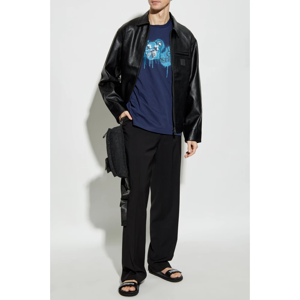 Wij presenteren het T-Shirt MET Print van het merk Iceberg, dat de essentie van kunst, elegantie en moderne streetwear-stijl belichaamt. Het marineblauwe T-shirt, gemaakt van de hoogste kwaliteit katoen, heeft korte mouwen en een ronde halslijn, wat zorgt voor comfort en bewegingsvrijheid. Het middelpunt van de creatie is de originele print - een gestileerde berenkop met kruisen in plaats van ogen, verrijkt met een vredesgebaar. De grafische afbeelding in een blauwe tint, die doet denken aan verfspetters, geeft het T-shirt een artistiek en exclusief karakter. De subtiele inscriptie