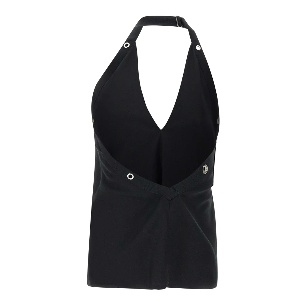 Upgrade je stijl met deze Iceberg dames top van lyocell in het zwart. Gemaakt van extra zacht materiaal, heeft het een halternek met verstelbaar lint, zilveren decoratieve ringetjes, diepe halslijn aan de voor- en achterkant, en een uitlopende zoom voor een reguliere pasvorm.