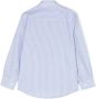 Wit, lichtblauw, katoen, gestreept patroon, klassieke kraag, knoopsluiting aan de voorkant, lange mouwen en knoopmanchetten.