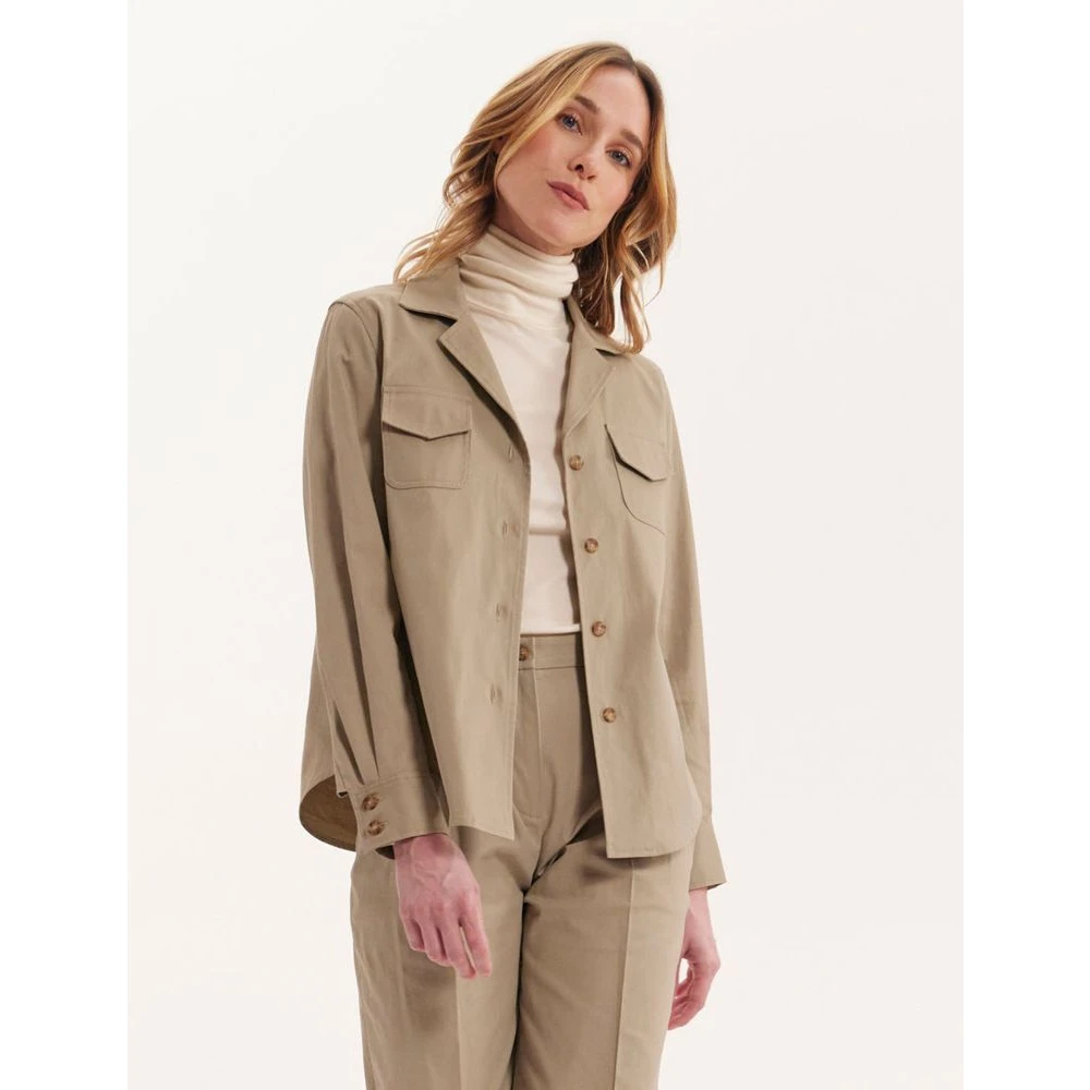 Het Evana-shirt is een recht gesneden shirt van sobere, originele beige milleraie katoen dat een safari-genspireerd stuk aan je garderobe zal toevoegen. Het model van dit shirt maakt het zeer comfortabel om te dragen, terwijl de twee opgestikte zakken aan de voorkant een vleugje praktisch en originaliteit toevoegen. Dit shirt kan gemakkelijk worden gedragen met denim of bijpassende broeken voor een complete safari-chique look. Evana shirt Rechte pasvorm met 2 achterplooien Reverskraag Knoopsluiting aan de voorkant Lange mouwen Knoopmanchetten met 2 knopen Voorflapzakken Modellen zijn tussen de 1, 78 cm en 1, 81 cm lang en dragen maat 36 Samenstelling: 98% katoen, 2% Spx Ontworpen in Parijs Gemaakt in Europa Referentie: 11T030Co 403