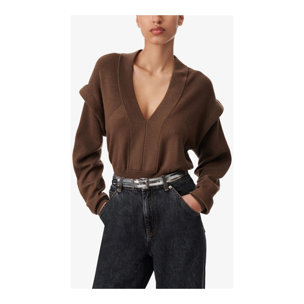 Upgrade je gebreide collectie met deze IRO V-hals gebreide trui voor vrouwen. Gemaakt van 100% wol, dit gebreide ontwerp heeft een geribbelde afwerking, lange mouwen, gelaagde details en een rechte zoom. De relaxte pasvorm zorgt voor comfort en bewegingsvrijheid. Model is 1, 76 m lang en draagt maat S.