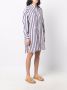 Gestreepte print, ruchedetails, puntige platte kraag, knoopsluiting aan de voorzijde, lange mouwen en rechte zoom.