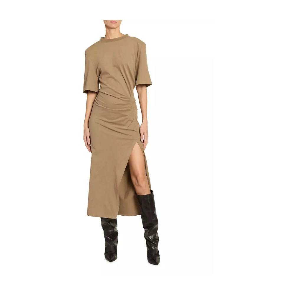 Upgrade je alledaagse stijl met deze Isabel Marant khaki midi jurk. Gemaakt van 100% katoen, heeft deze jurk een elastische trekkoord taille voor een comfortabele pasvorm. Gemaakt in Portugal, heeft het zijdelingse splitzakken, achterzakken en cargozakken voor extra gemak. De licht rekbare stof en rechte pijp maken het een veelzijdige en chique keuze. Model is 178cm-5'10 lang.