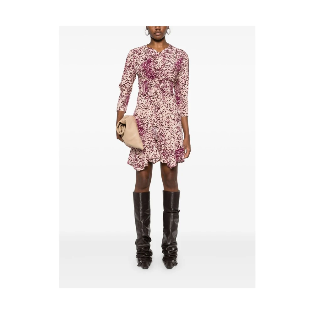 Upgrade je stijl met deze Isabel Marant dagjurk in orchidee paars met verborgen zijrits, haak-en-oogsluiting aan de voorkant, gerimpelde details en abstract patroonprint.