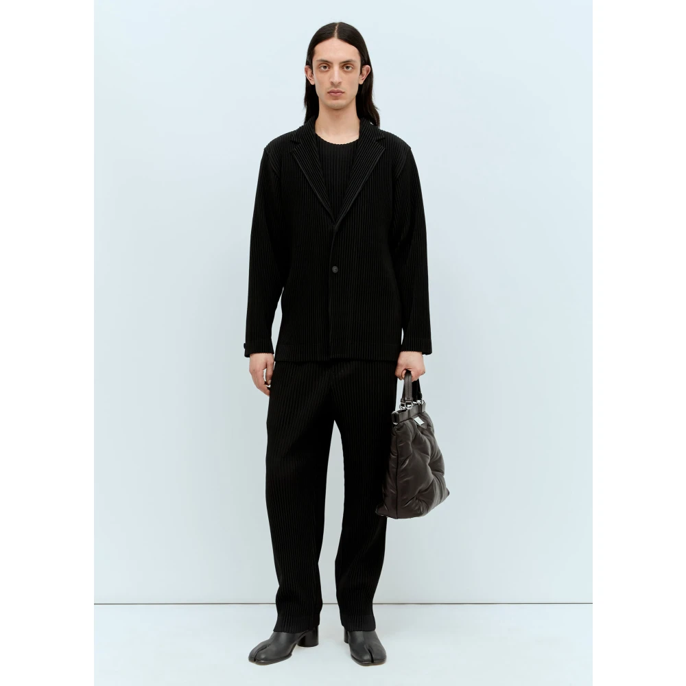 Verhoog je stijl met deze zwarte polyester blazer van Issey Miyake voor heren. Perfect voor elke gelegenheid, is deze strakke en verfijnde jas een must-have toevoeging aan je garderobe