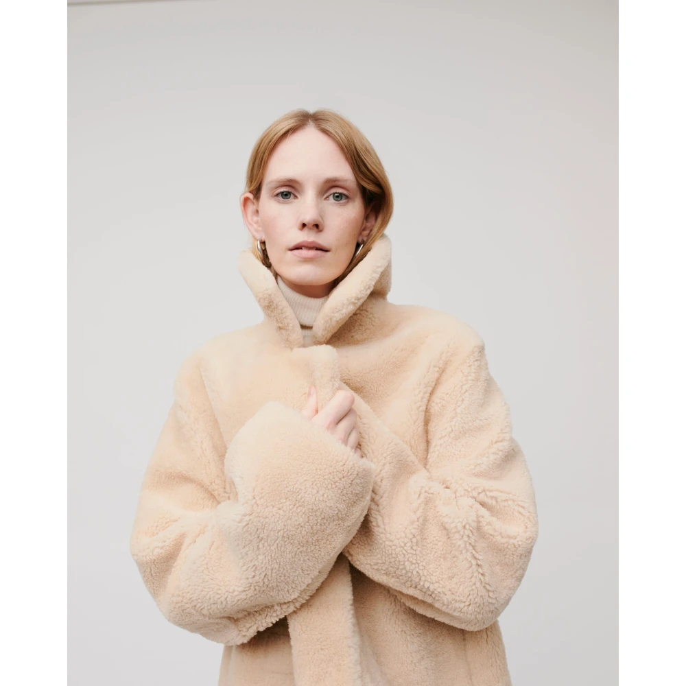 Onze oversized boxy shearling jas Lotte is perfect voor de koude winterdagen en creert een gezellig moment. De jas kan aan de pluizige kant worden gedragen of binnenstebuiten worden gekeerd om een ander uiterlijk te tonen. De andere kant heeft een platte lederlook met een pluizige kraag en manchetten, de opgestikte zakken herhalen de boxy vorm van de jas. Ongevoerd Verborgen metalen drukknopen Kleur 1: Karamel Kleur 2: Beige Categorie: blazer & jassen Subcategorie: buitenkleding jassen Materiaal: n.a.
