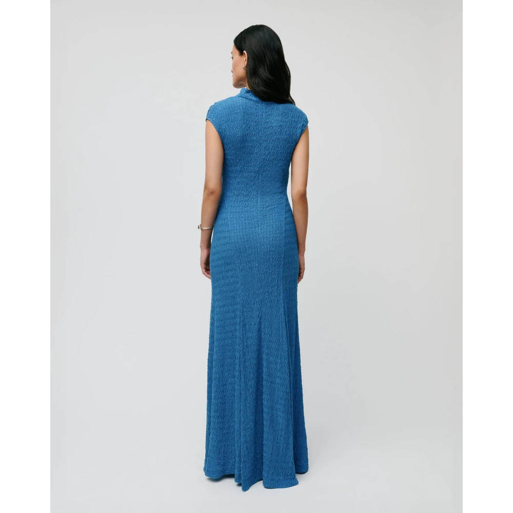 De enkellange Marcella jurk heeft een nauwsluitende pasvorm in het bovenstuk en een vloeiende rok. Het heeft een lichte opstaande kraag en een rits aan de achterkant. Het materiaal is elastisch. Kleine opstaande kraag Wordt tijdens het dragen iets langer, moet gestoomd worden om de oorspronkelijke vorm terug te krijgen Plooien detail in de rok Zonder voering