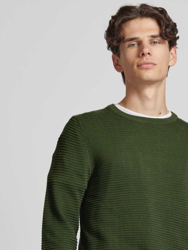 Gebreide herenpullover van JACK & JONES. Puur katoen. Recht model. Model 'OTTO'. Ronde hals. Ruglengte bij maat M: 75 cm. Mouwlengte bij maat M: 74 cm
