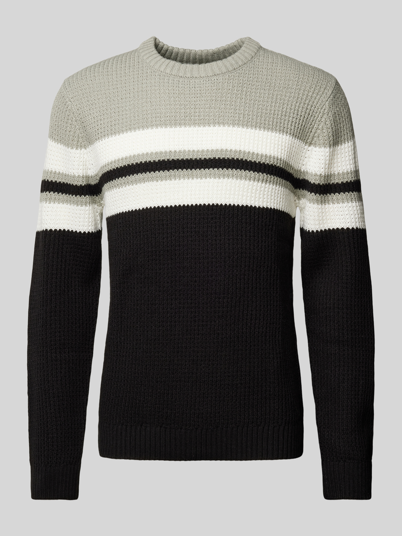 Deze trui voor heren van JACK & JONES is gemaakt van een katoenmix en is gestreept. Het model heeft een ronde hals en lange mouwen.details van deze trui:stijlnaam: JJSANDERgeribde boordenfijn gebreid