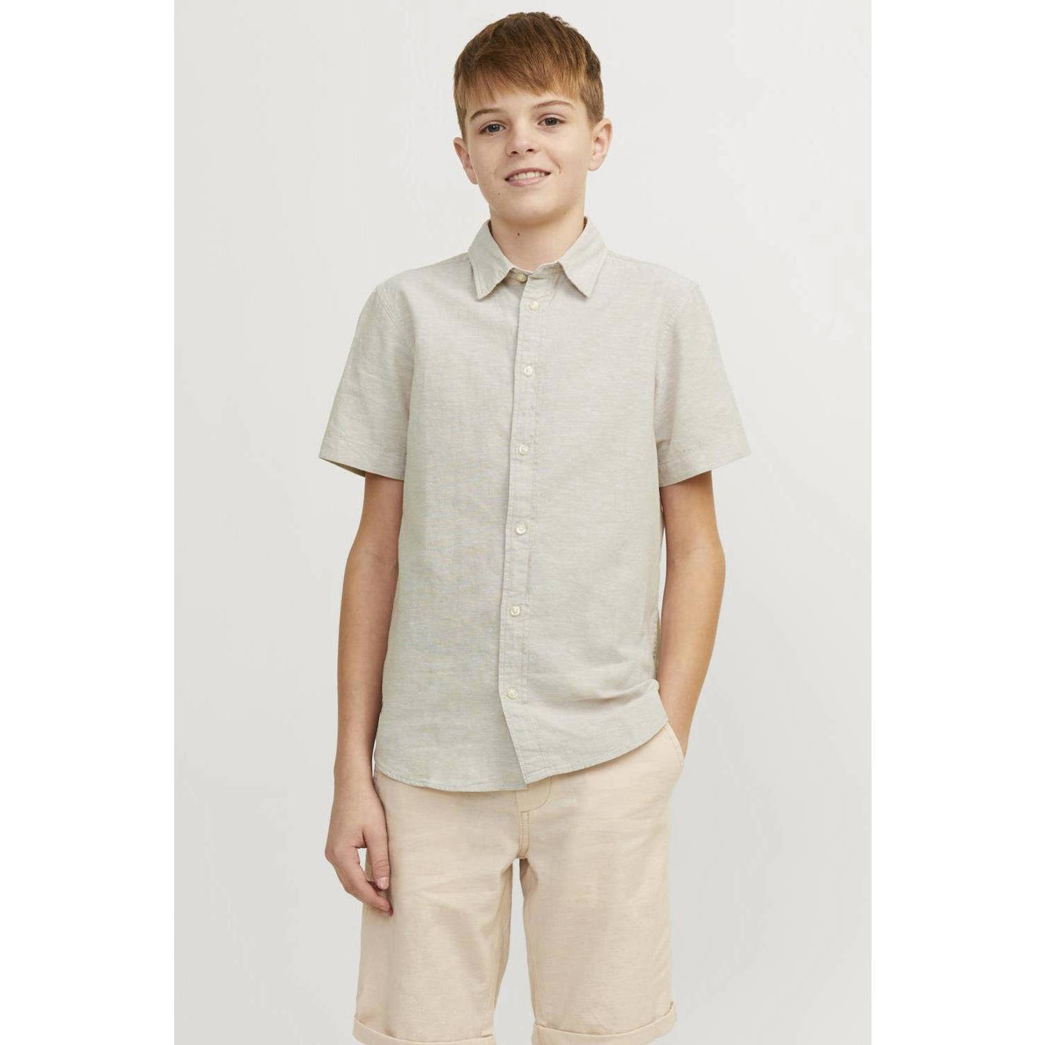 Dit overhemd voor jongens van JACK & JONES JUNIOR is gemaakt van een katoenmix. Het model heeft een klassieke kraag en korte mouwen. Het overhemd heeft een knoopsluiting.details van dit overhemd:stijlnaam: JJELINEN BLEND