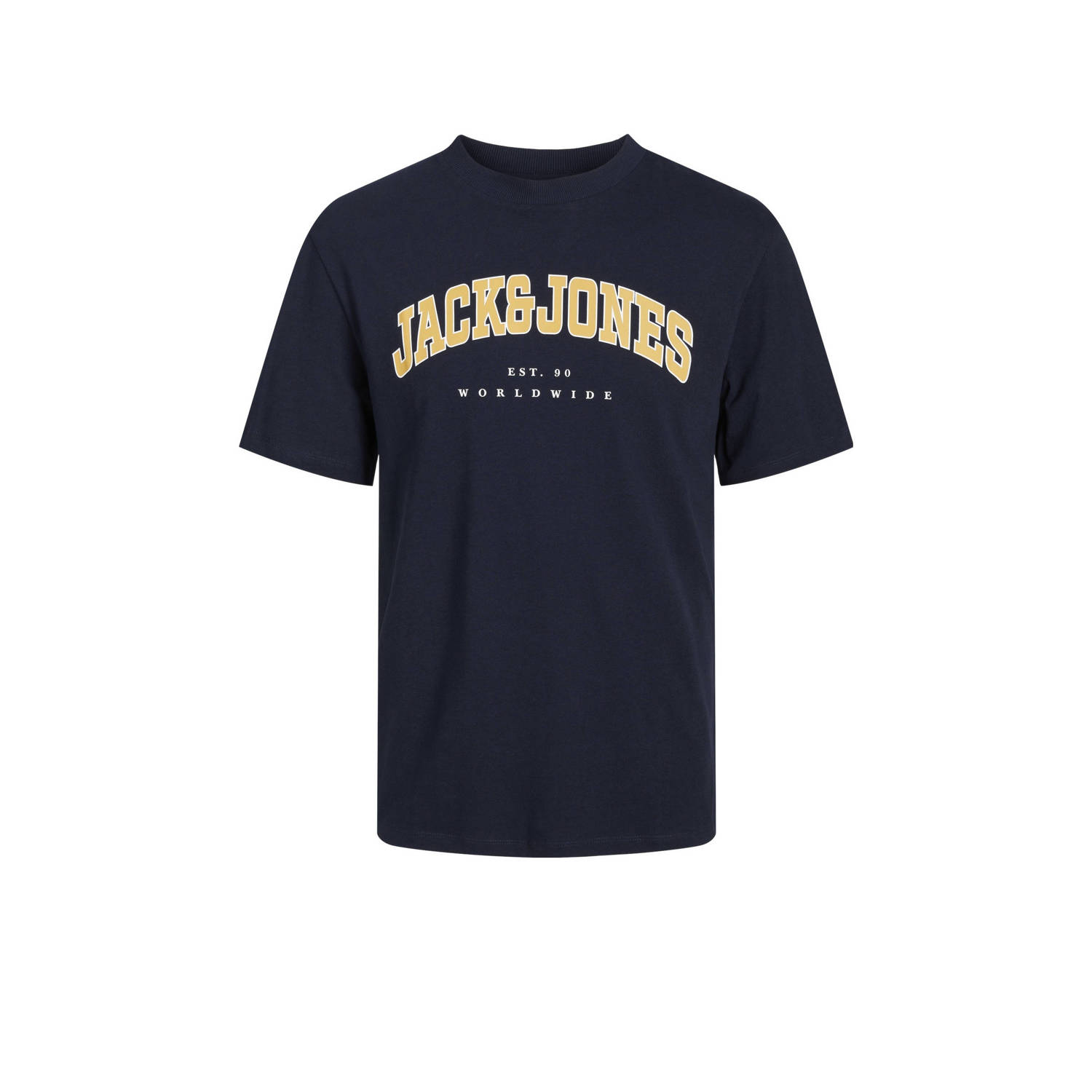 Dit T-shirt voor jongens van JACK & JONES JUNIOR is gemaakt van katoen en heeft een logo-opdruk. Het model heeft een ronde hals en korte mouwen.details van dit T-shirt:stijlnaam: JJECALEB VARSITY