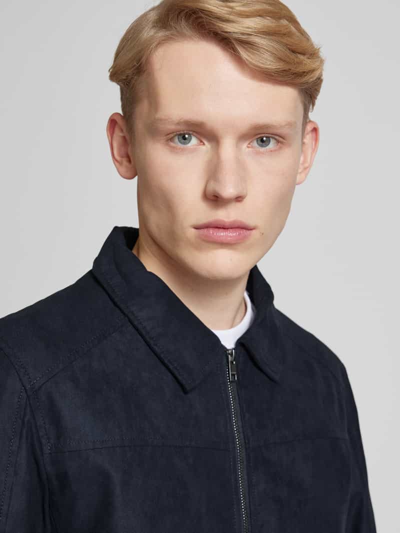 Herenjas van JACK & JONES. Recht model. Kentkraag. Model 'DYLAN'. Deelbare ritssluiting. Siernaden. Steekzakken opzij. Ruglengte bij maat M: 69 cm. Schouderbreedte bij maat M: 45 cm. Borstomvang bij maat M: 51 cm. Mouwlengte bij maat M: 65 cm