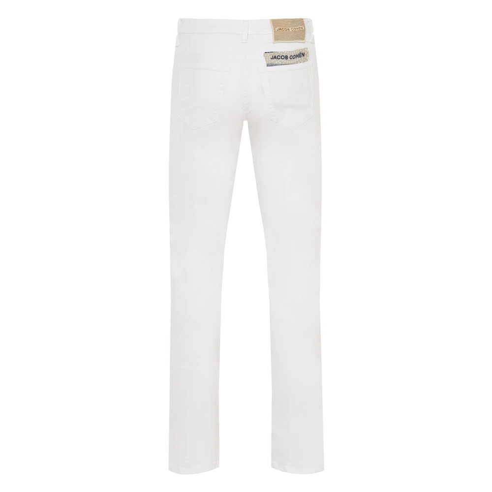 Ontdek de Jacob Cohn Bard Slim-fit Jeans voor heren, gemaakt van 89% katoen, 8% polyester en 3% elastaan. Dit handgemaakte Italiaanse meesterwerk heeft vijf zakken, binnenin details en een zoom van 17 cm. Gemaakt met speciale Japanse stoffen, wordt geleverd met specifieke wasinstructies en unieke Jacob Cohen-verpakking. Model draagt maat 32. Designers code: Qe 004036P3732Tr.