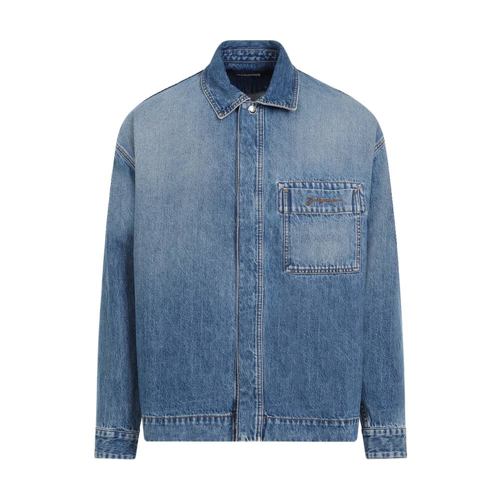 Jacquemus Denim overhemdjasje met monogramzak Blue Heren