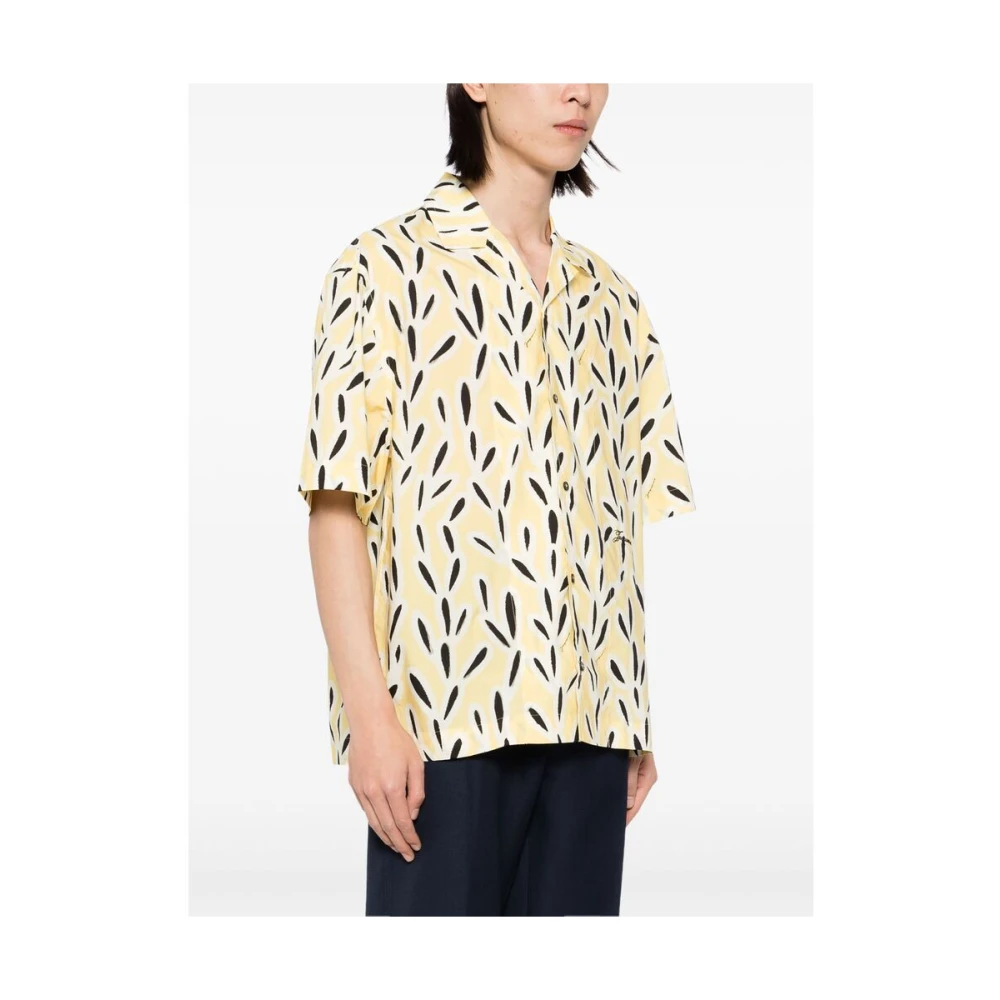 Jacquemus gele camp kraag korte mouwen overhemd met knoopsluiting aan de voorkant en rechte zoom voor mannen.