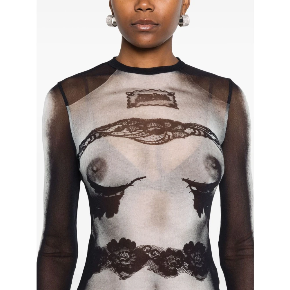 Jean Paul Gaultier Mesh Design Semi-Transparante Jurk Black Dames