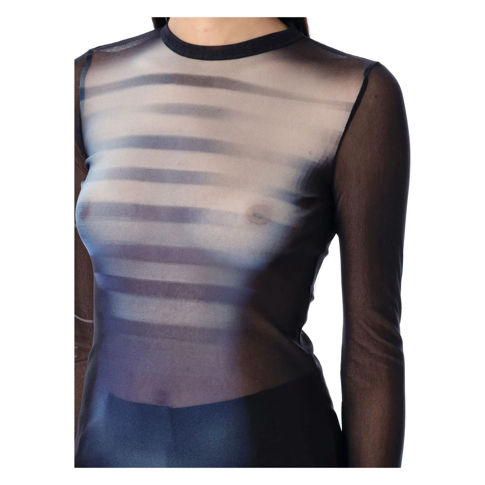 Upgrade je stijl met deze Jean Paul Gaultier Le Mle longsleeve top in bedrukte mesh. Gemaakt in Itali, deze top heeft een ronde hals, lange mouwen, grafische print en semi-transparante stof. Gemaakt van 100% polyamide. Handwas aanbevolen.