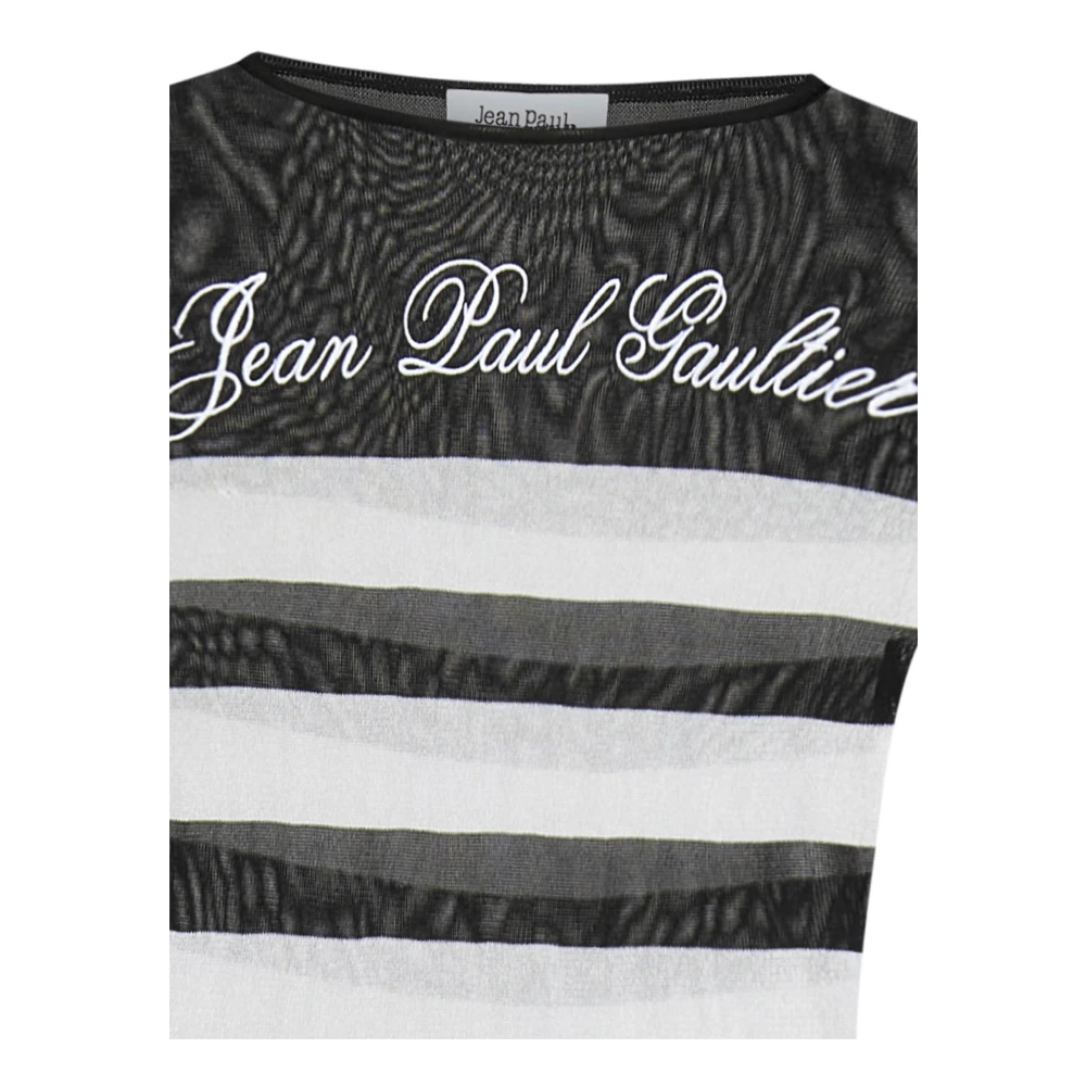 Upgrade je stijl met deze prachtige Jean Paul Gaultier maxi jurk. Met een ronde hals, lange mouwen en een strakke pasvorm is deze zwart-witte jurk versierd met het iconische Jean Paul Gaultier logo geborduurd aan de voorkant. Gemaakt in Itali van stretchmateriaal, is deze jurk zowel chique als comfortabel.