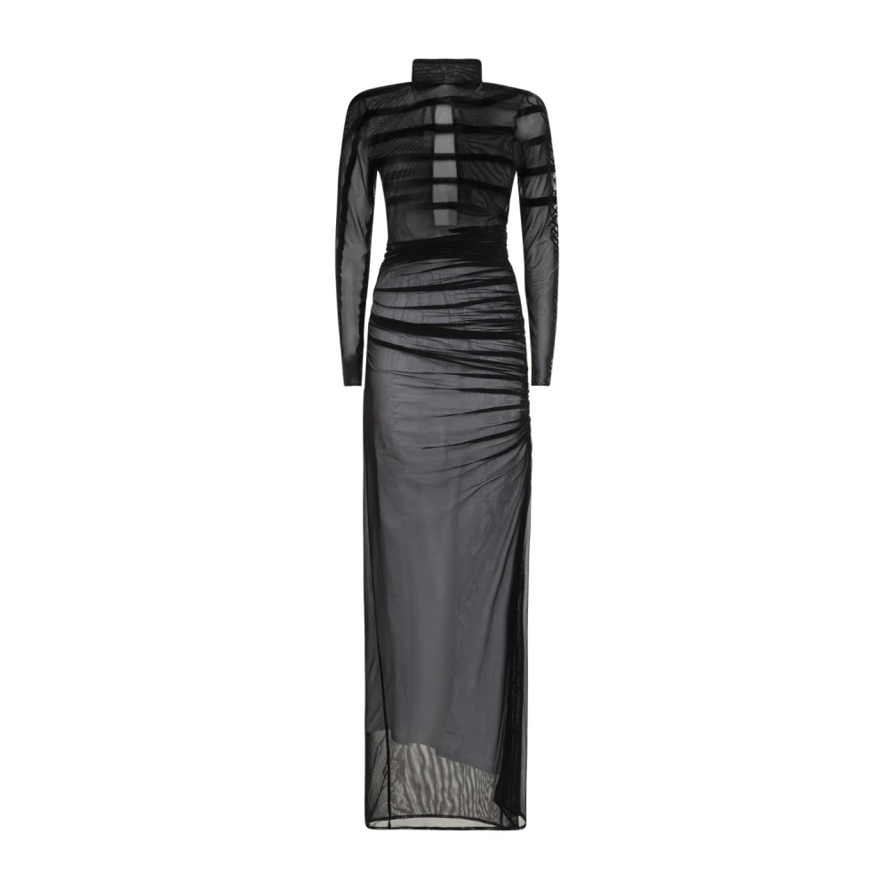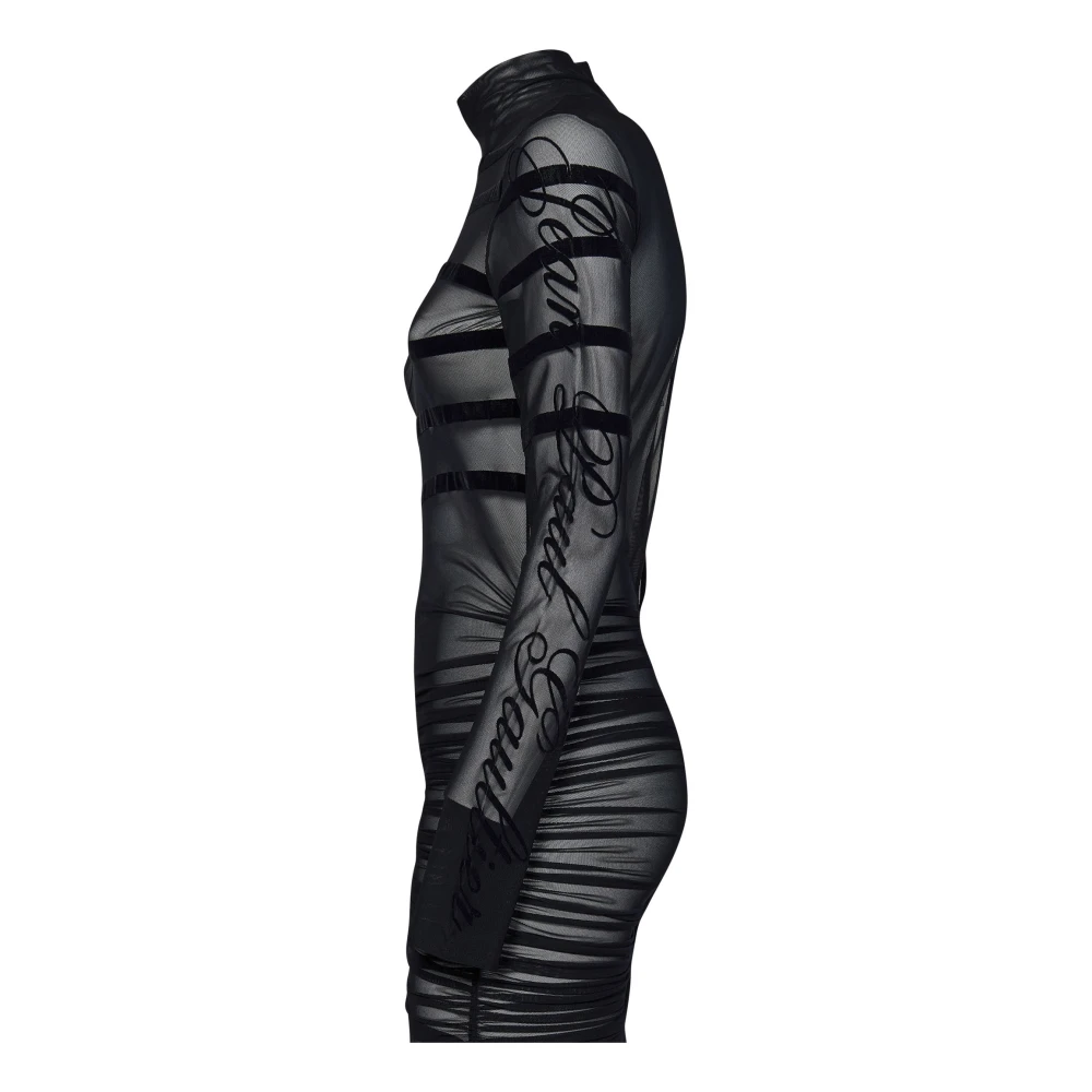 Verrijk je stijl met deze prachtige Jean Paul Gaultier Zwarte Col Maxi Jurk. Gemaakt van 94% Polyamide en 6% Elastaan, is deze jurk perfect voor de moderne vrouw die een statement wil maken