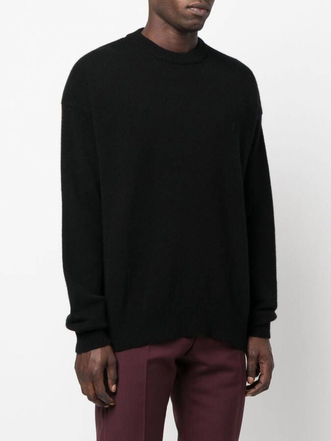 Gitzwart, kasjmier, fijngebreid, ronde hals, lange mouwen, geribbelde manchetten en geribbelde tailleband.