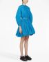 Oceaanblauw, pliss-effect, ronde hals, verborgen ritssluiting op de rug, raglan mouwen in driekwartslengte, elastische manchetten, taille met ceintuur en dijlengte.