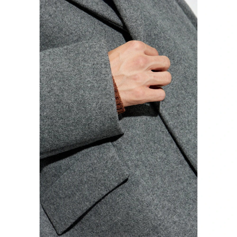 Wij presenteren u een Wollen JAS uit de exclusieve collectie van het merk JIL Sander. Deze elegante, formele herenjas met een klassieke snit is het toonbeeld van minimalisme en verfijning, waardoor het de perfecte keuze is voor speciale gelegenheden. De jas heeft een Eenvoudige Snijt die tot halverwege de kuit reikt en een Enkele Knopensluiting. De dominante kleur is grijs, en het materiaal gemaakt van de hoogste kwaliteit wol biedt warmte en een elegant uiterlijk. De stof heeft een gladde textuur, waardoor de klassieke uitstraling wordt benadrukt. De details van de jas omvatten brede revers die een formeel tintje toevoegen en twee eenvoudige externe zakken afgewerkt met kleppen. Binnenin de jas zijn een zwarte voering en een ontwerper logo patch zichtbaar, wat wijst op de exclusiviteit ervan. De lange mouw eindigt met een eenvoudige manchet, waardoor de minimalistische stijl wordt benadrukt. Waarom ZOU U DIT Product Kopen? * Hoogwaardige wol die warmte en comfort biedt. * Klassieke, elegante snit geschikt voor formele gelegenheden. * Eenvoudig en verfijnd ontwerp van het gerenommeerde merk Jil Sander. * Zorgvuldig vervaardigde details die de exclusiviteit van het product benadrukken. Model's metingen Hoogte: 193 cm Borst: 95 cm Taille: 82 cm Heupen: 93 cm Model draagt maat: 48