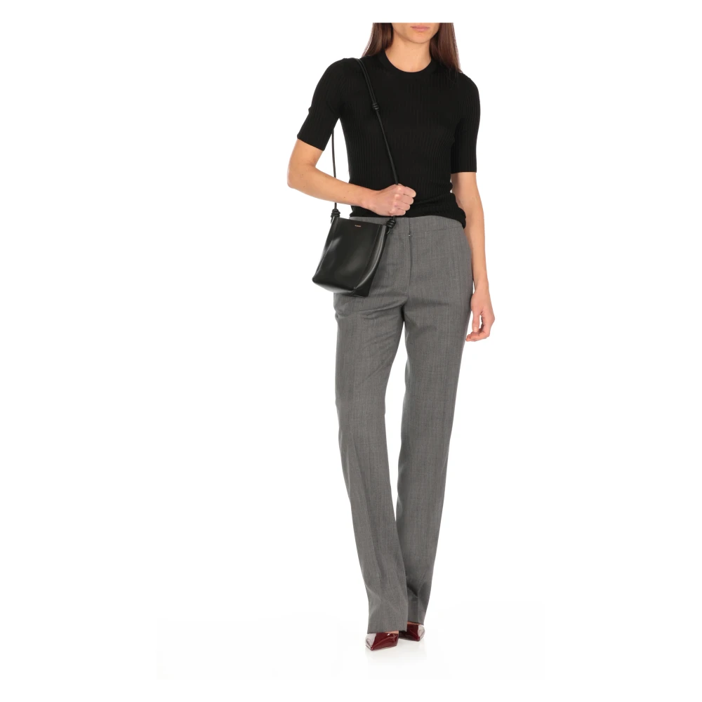 Upgrade je garderobe met deze zwarte Jil Sander zijden t-shirt voor vrouwen. Met geribbeld patroon, ronde halslijn en korte mouwen. Model is 179 cm lang en draagt maat 38.