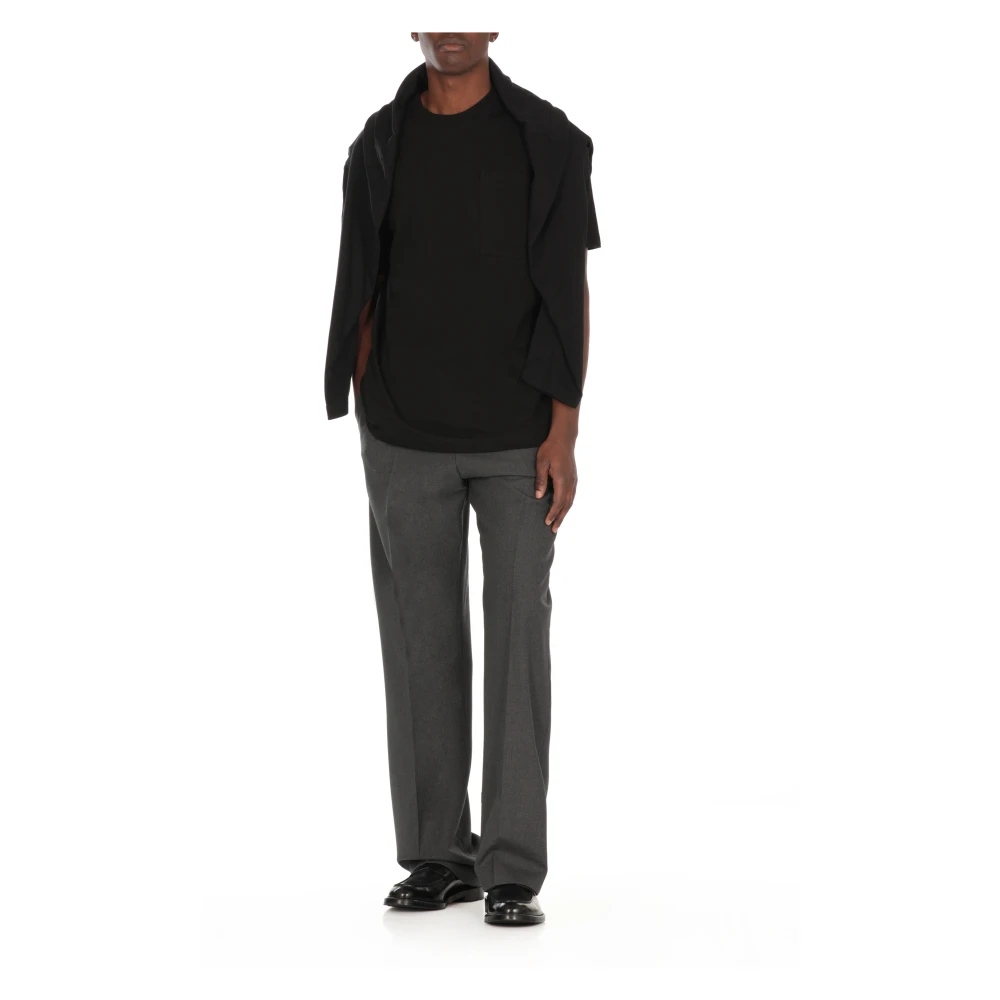 Upgrade je casual look met deze zwarte Jil Sander katoenen t-shirt voor heren. Voorzien van een ronde hals, korte mouwen en een borstzakje. Model is 190 cm lang en draagt maat L.